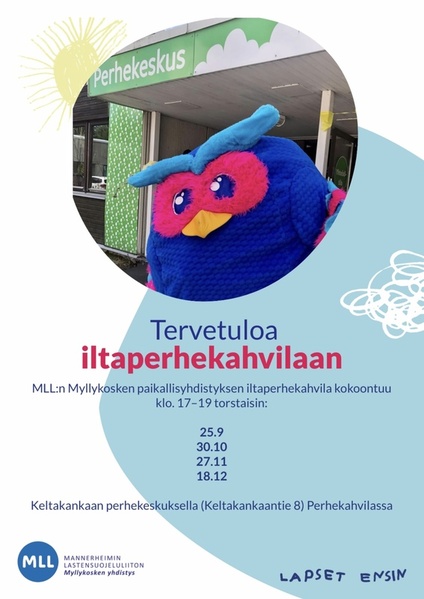 MLL:n Myllykosken paikallisyhdistyksen iltaperhekahvila kokoontuu klo. 17–19 torstaisin: