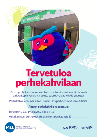 Iltaperhekahvila kokoontuu kevätkaudella Keltakankaan perhekeskuksella